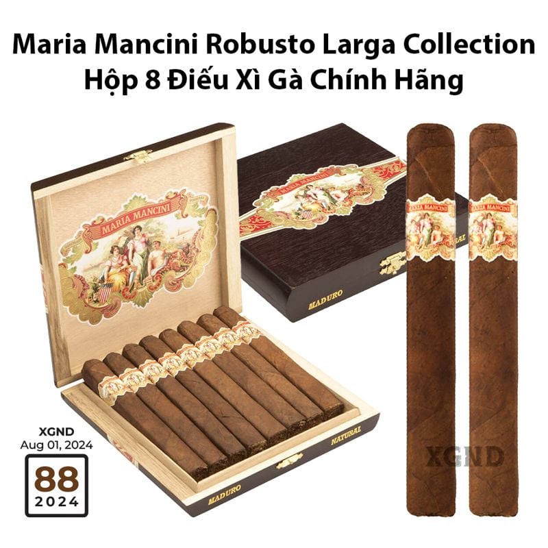 Bộ sưu tập Maria Mancini Robusto Larga 8 Collection với điểm số trung bình là 88 điểm, được giới chuyên môn đánh giá cao nhờ hương vị phong phú và thiết kế đẳng cấp. Đây là bộ sưu tập lý tưởng dành cho người sành xì gàxì gà cho người mới bắt đầu, mang lại những khoảnh khắc thưởng thức xì gà chính hãng trọn vẹn và đậm chất nghệ thuật.